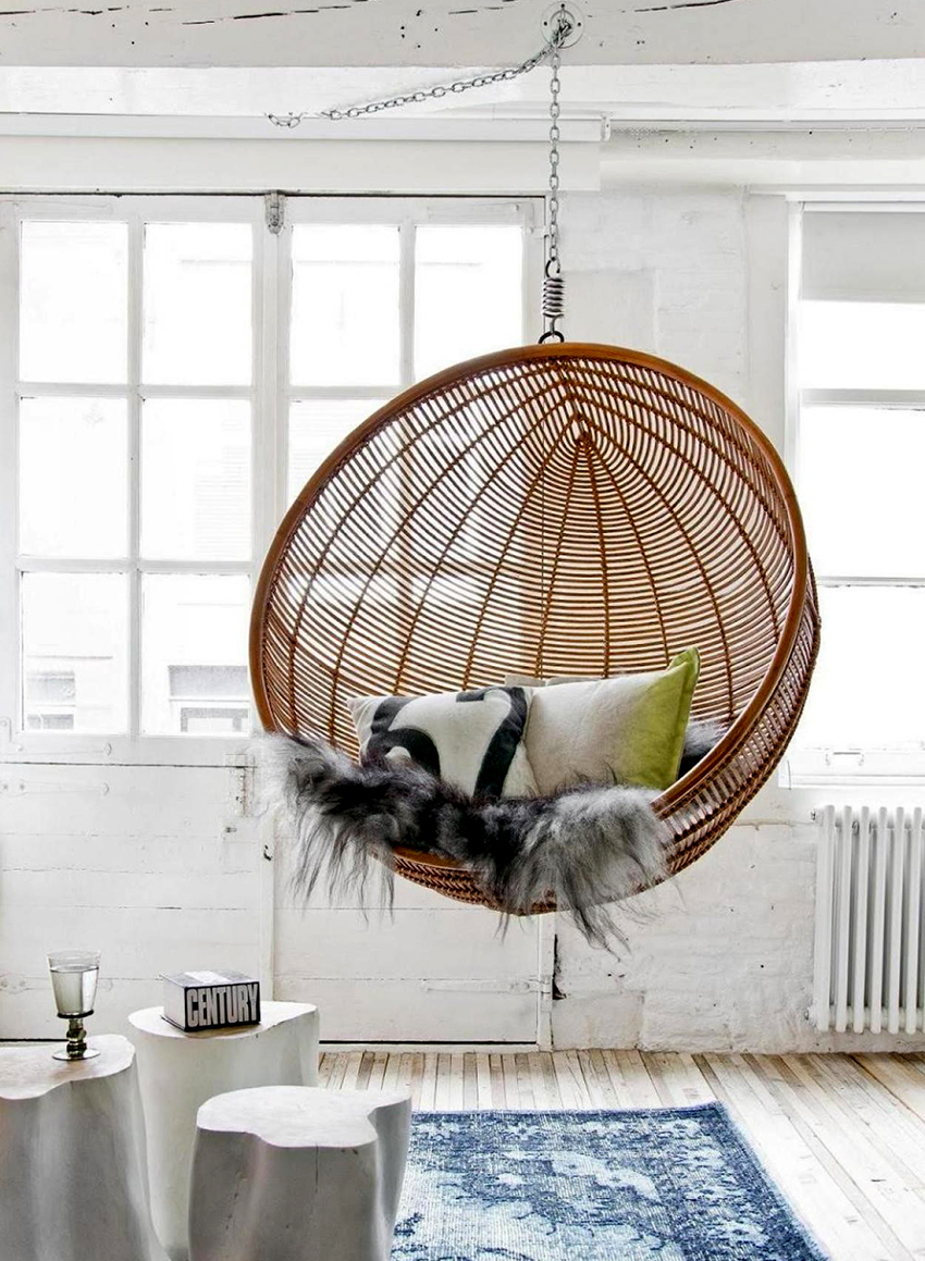 - 3 Die Hauptoptionen zum Aufhängen von Stühlen: Kokon, Hängematte, Nest
