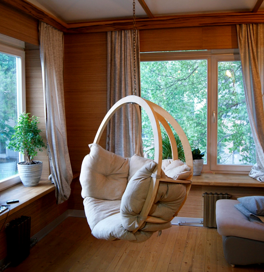 Das ist interessant! Die ersten Hängesessel erschienen Mitte des letzten Jahrhunderts in Dänemark und wurden ursprünglich zur Dekoration des Gartenbereichs verwendet. Dann begannen sie, solche Modifikationen herzustellen, die erfolgreich in kleinen Wohnungen platziert wurden.