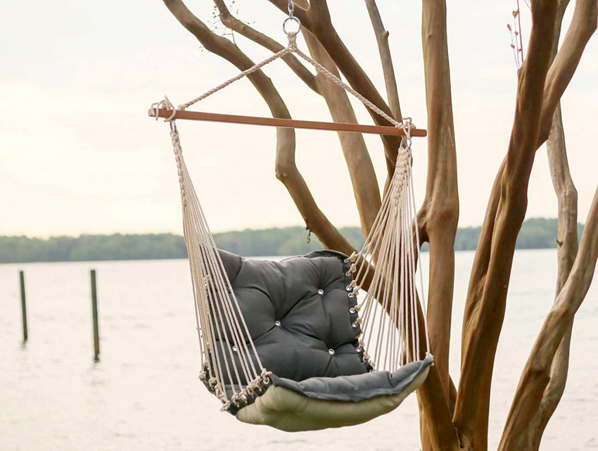 Der einfachste Weg, einen Hängesessel zu befestigen, besteht darin, ihn mit einer Schnur oder Kette von oben aufzuhängen.