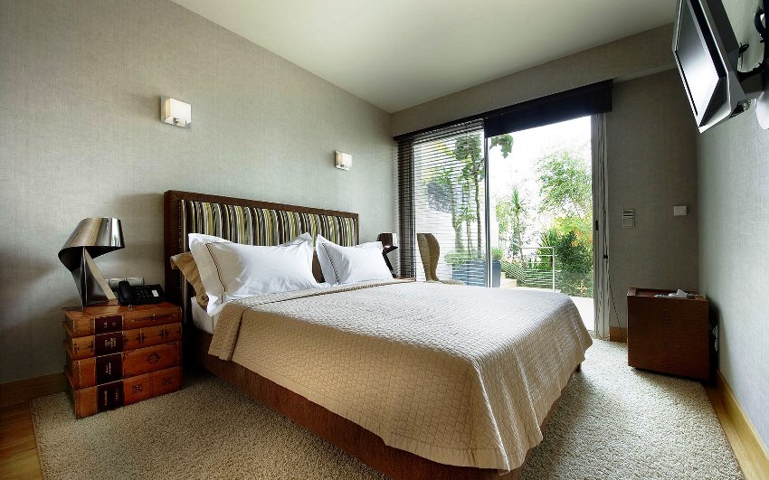 Hilfreicher Tipp! Für den Fall, dass Nachttische auf beiden Seiten des Bettes aufgestellt werden sollen, wird empfohlen, dass die Modelle gleich sind. Wenn nur für ein solches Element Platz ist, ist es besser, es auf die rechte Seite des Bettes zu legen. Dank dieser Designtechnik wird der Raum optisch komfortabler.