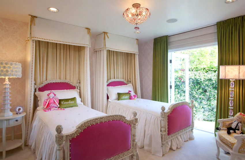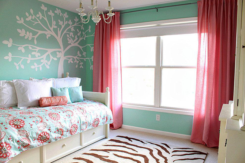 - Chenille. Dichter Jacquardstoff mit einem komplexen Webmuster, der einen Raum gut schattiert, eignet sich zur Schaffung eines Schlafzimmers, Wohnzimmers oder Kindergartens.