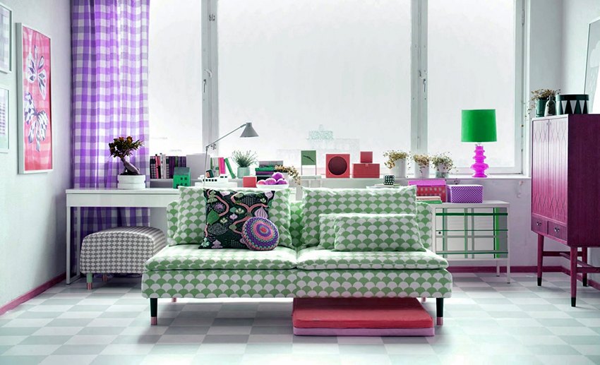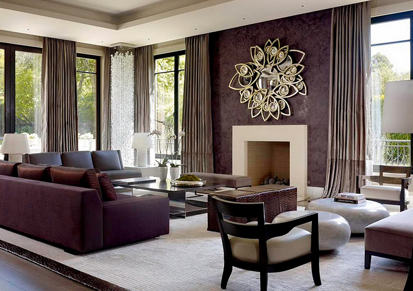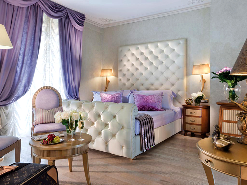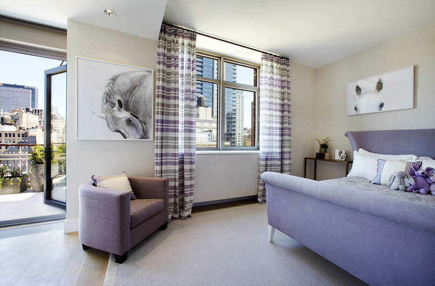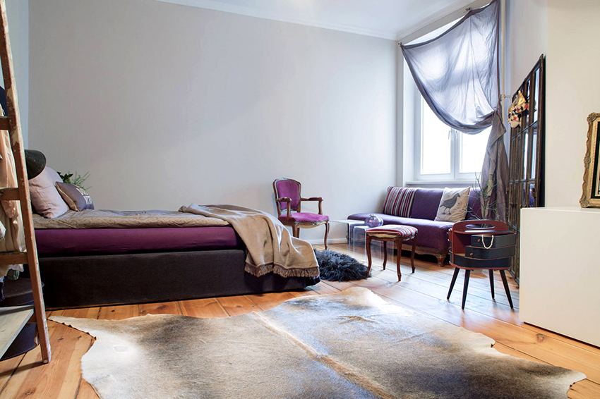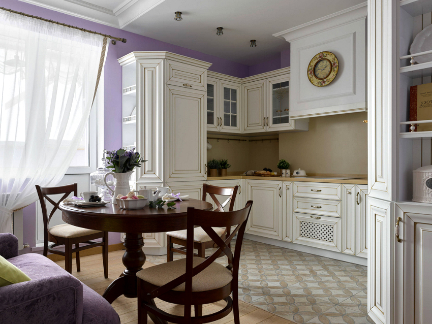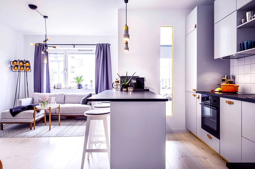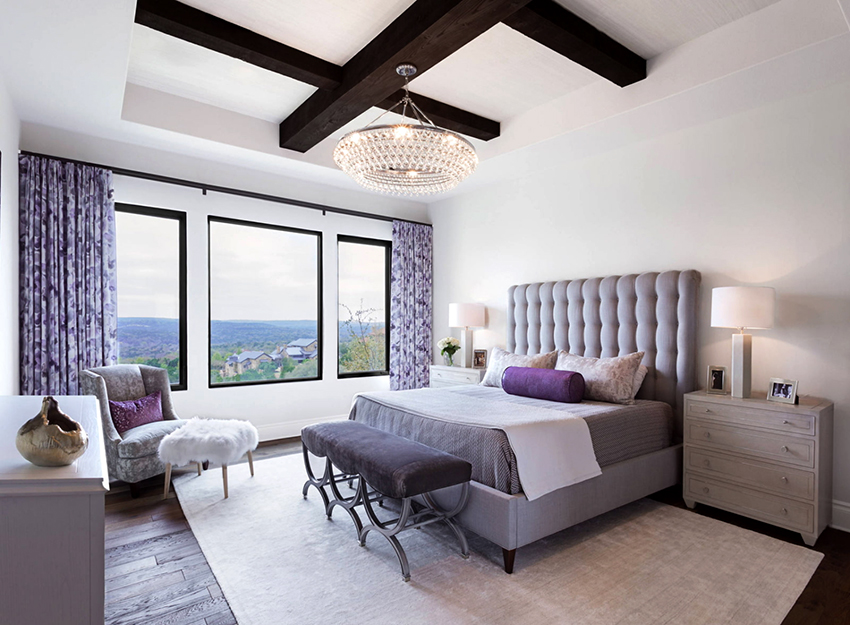 - Lavendel. Eine sanfte Universalfarbe, die sich für die Gestaltung von Vorhangdesigns in einem Raum jeden Stils eignet.