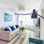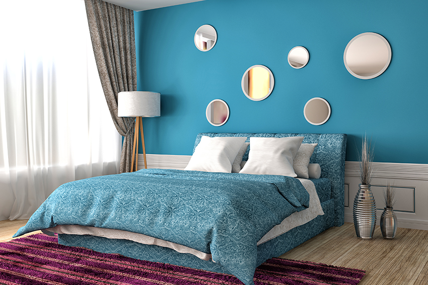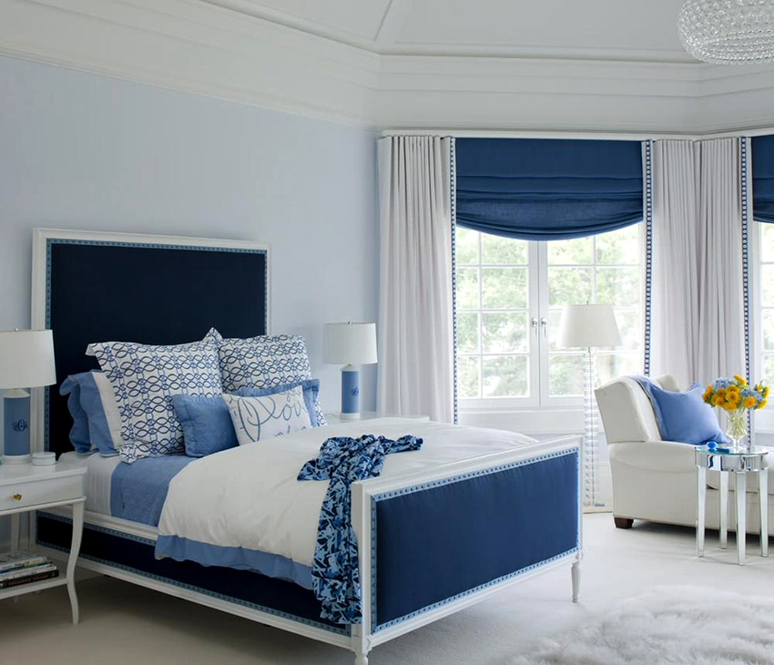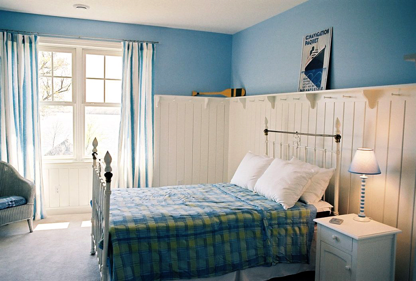 - Blau. Eine coole Farbe, die ein Gefühl der Ruhe schafft und sich hervorragend für Zimmer im skandinavischen Stil eignet.