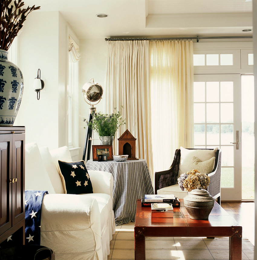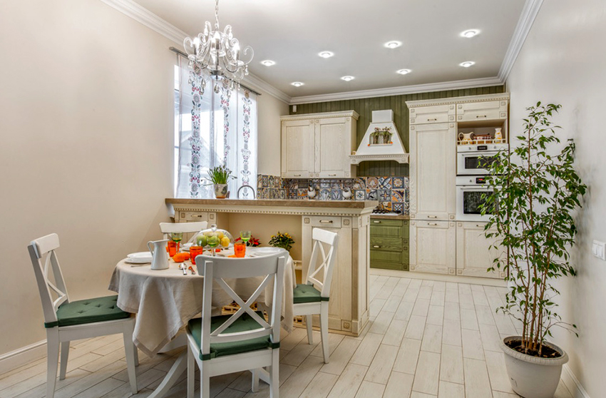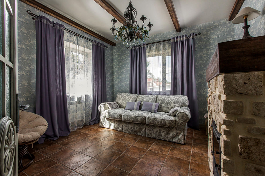 - Provence. Leichte Leinen- oder Chintzstoffe reichen aus. Grundfarben: Oliv, Lavendel, Blau.