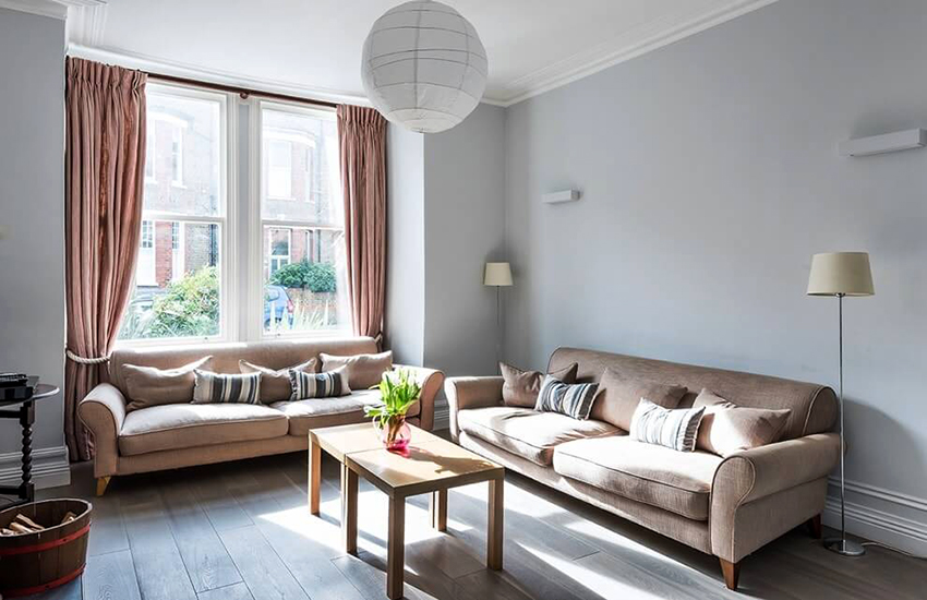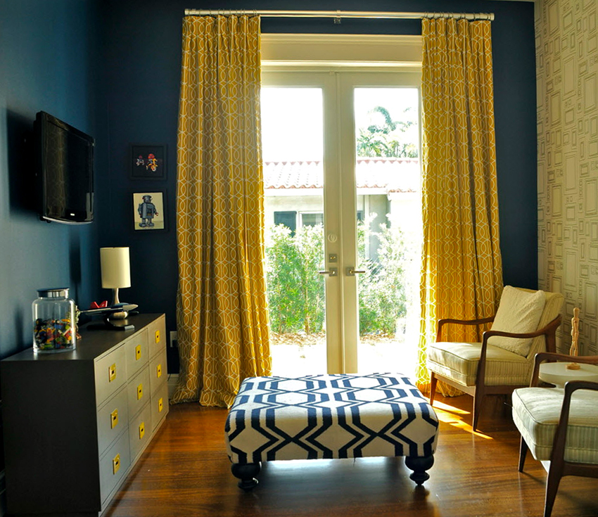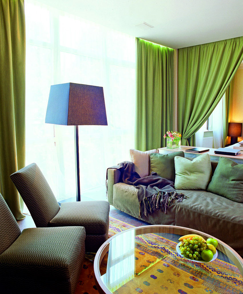 - Dunkle Vorhänge machen Räume jeder Größe etwas kleiner, während kühle Farbtöne die Tiefe des Raums optisch erhöhen.