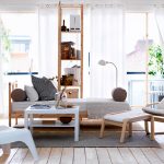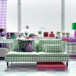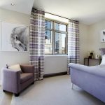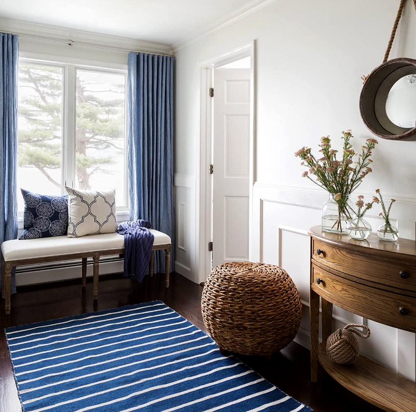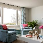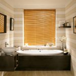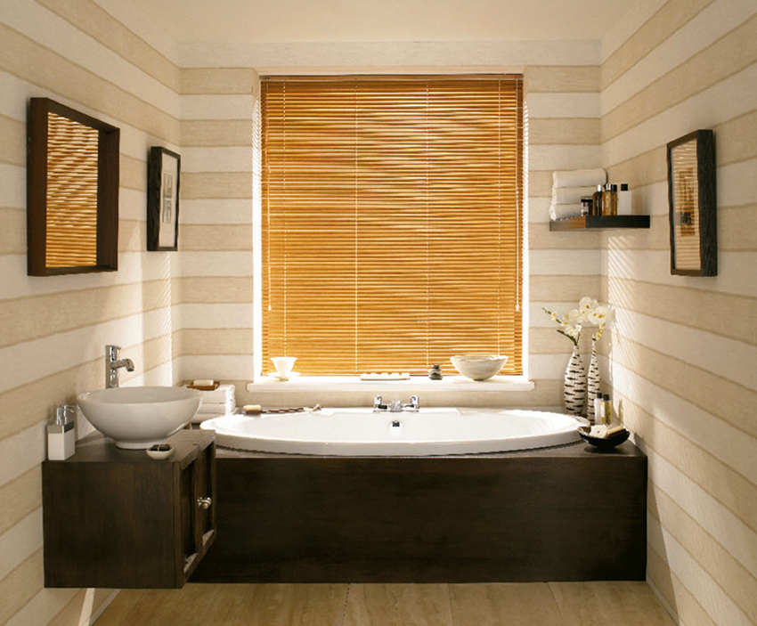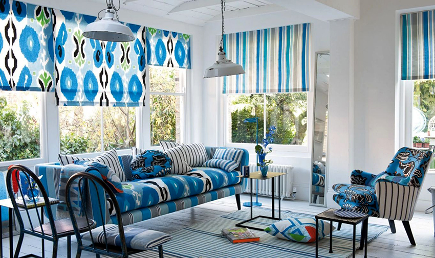 - Ein schmales Fenster kann mit einem horizontal gestreiften Druckvorhang eingestellt werden.