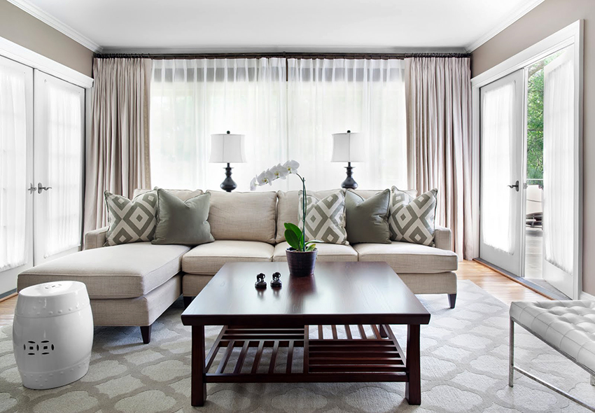Merkmale der Fensterdekoration im Wohnzimmer: Fotos von schönen Innenräumen