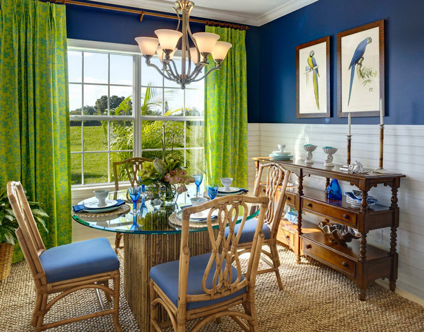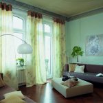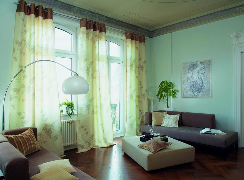 - Wenn Sie sich das Foto der Vorhänge an den Fenstern ansehen, können Sie feststellen, dass normalerweise die Farbe der Produkte unter Berücksichtigung des Schattens der Möbelfassaden ausgewählt wird. Dies geschieht aufgrund der Tatsache, dass Wanddekorationen häufiger durchgeführt werden müssen als Möbelwechsel. Es wird auch empfohlen, sich bei der Auswahl der Vorhänge für einen Raum, der durch eine Fülle von Zimmerpflanzen gekennzeichnet ist, von der Farbe der Möbel leiten zu lassen.