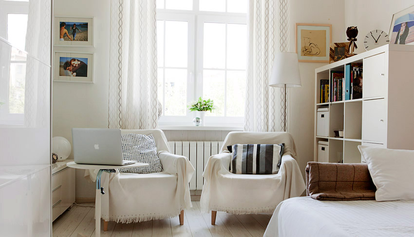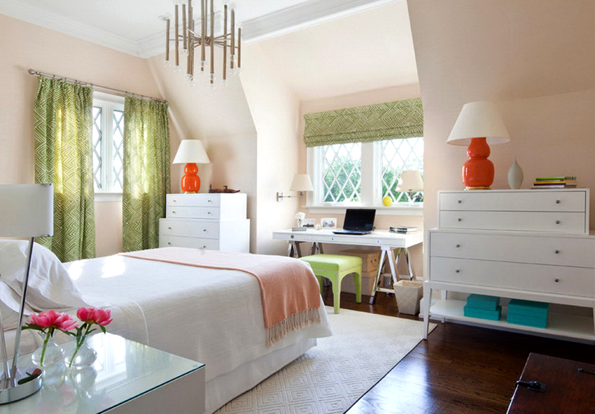 - Wenn Sie bei der Planung eines Innenraums Angst vor Experimenten haben, ist es besser, neutrale, universelle Farben wie Weiß, Creme und Beige zu bevorzugen. In jedem Fall kann später mit Hilfe von dekorativen Elementen - einem hellen Lambrequin oder Strumpfbändern - ein heller Akzent hinzugefügt werden.
