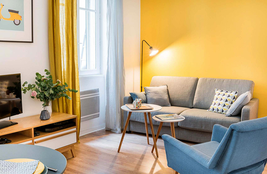 - Gelb. Eine optimistische Farbe, die einen dunklen Raum mit sonniger Stimmung erfüllt.