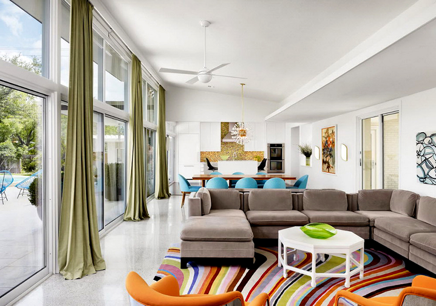 Bei der Wahl moderner Vorhänge für das Wohnzimmer bevorzugen sie immer häufiger nicht nur helle neutrale Töne, sondern auch helle Farbtöne, die dem Raum Individualität verleihen. Orange, Gelb, Pink, Blau, Pflaumen- und Schokoladenfarben eignen sich hervorragend für das Wohnzimmer. Durchscheinende weiße Vorhänge gelten als vielseitig und eignen sich zur Dekoration eines Wohnzimmers in jedem Stil.