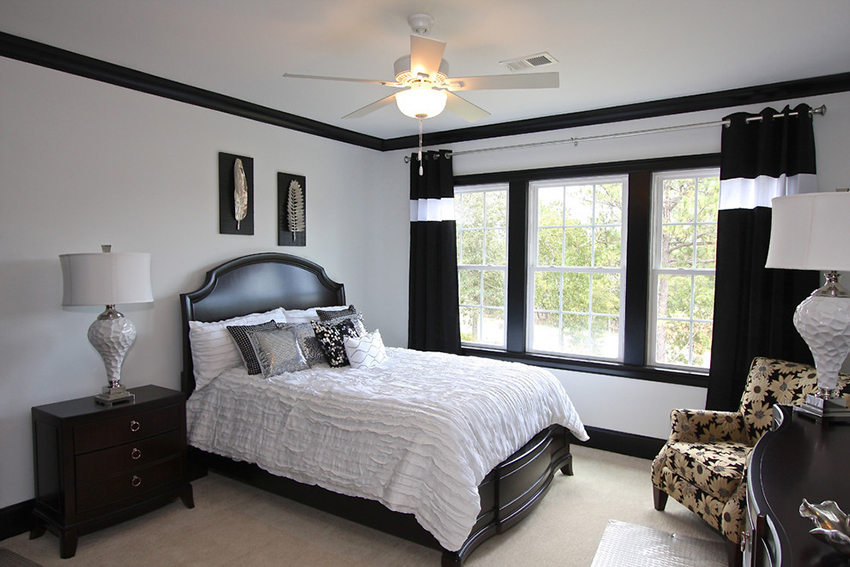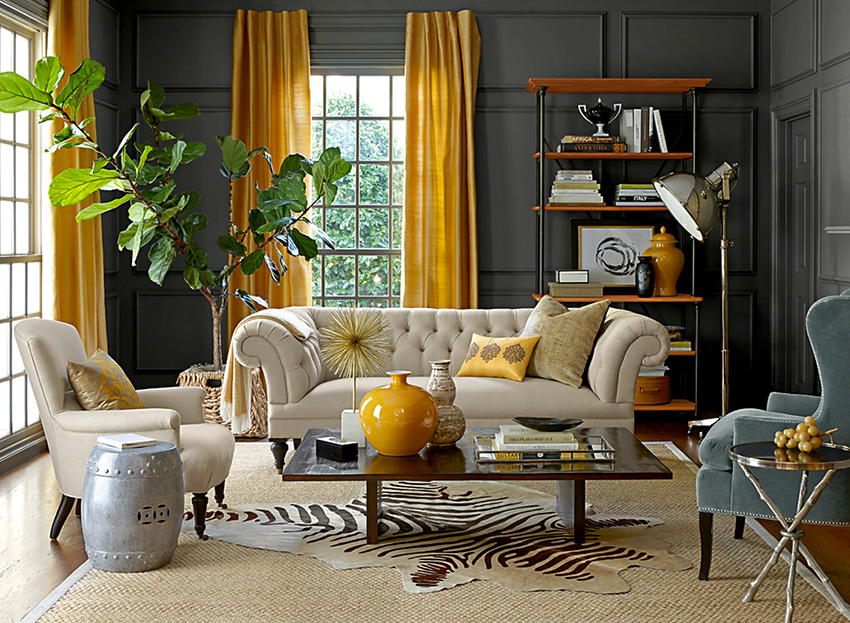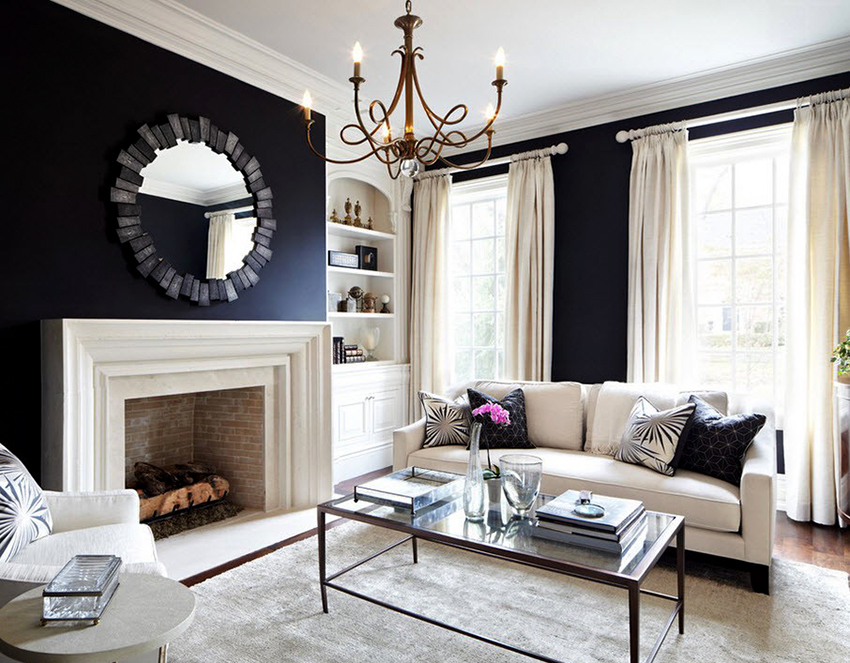 - Das Schwarze. Vorhänge in dieser Farbe können in Räumen verwendet werden, die reichlich mit Sonnenlicht gesättigt sind und über eine gute künstliche Beleuchtung verfügen. Schwarz ist ideal für die Dekoration eines Heimkino-Raums.