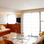 - In einem Raum mit kleiner Fläche wird für eine visuelle Vergrößerung des Volumens empfohlen, Lichtvorhänge ohne große Muster zu bevorzugen. Es ist besser, monochromatische Produkte oder einen kleinen, unauffälligen Druck zu wählen.