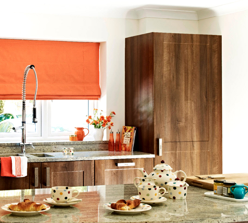 - Orange und Grün. Vorhänge in diesen Farben bringen Helligkeit in den Raum. Wenn Sie diese Farben bei der Gestaltung eines Kücheninterieurs verwenden, hat laut Psychologen jeder, der in einer solchen Küche speist, einen guten Appetit.