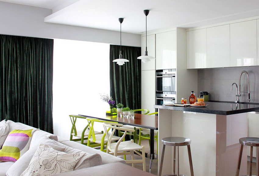 Es ist notwendig, das Design der Vorhänge bereits in der Phase der Reparatur der Räumlichkeiten zu wählen.