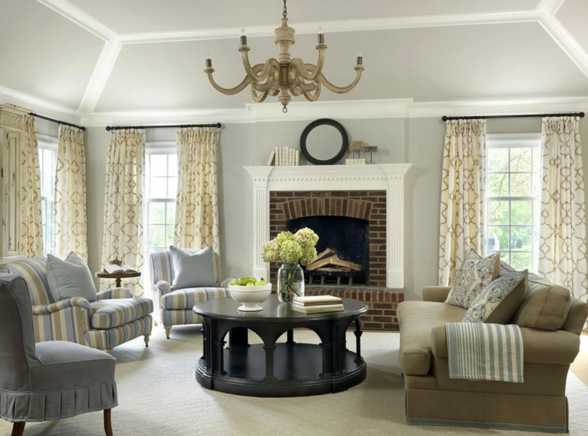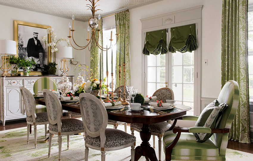 - In einem Raum mit hohen Decken können Vorhänge mit Lambrequins oder verschiedenen dekorativen Elementen ergänzt werden.