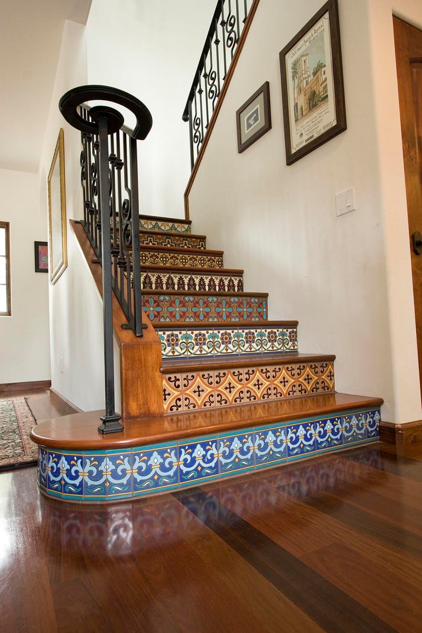 Keramikfliesen und Mosaike mit ethnischen spanischen Mustern werden zur Dekoration verwendet. Auch für die spanische Variante des mediterranen Stils werden folgende Materialien verwendet:
