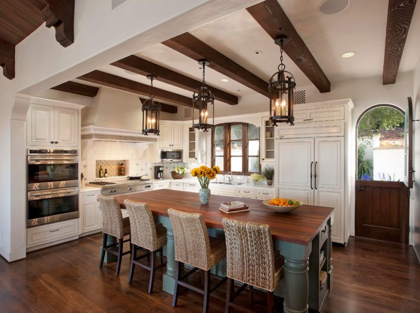 Für die spanische Vielfalt des mediterranen Stils werden Materialien wie Naturstein, Ton und massive Holzbalken verwendet