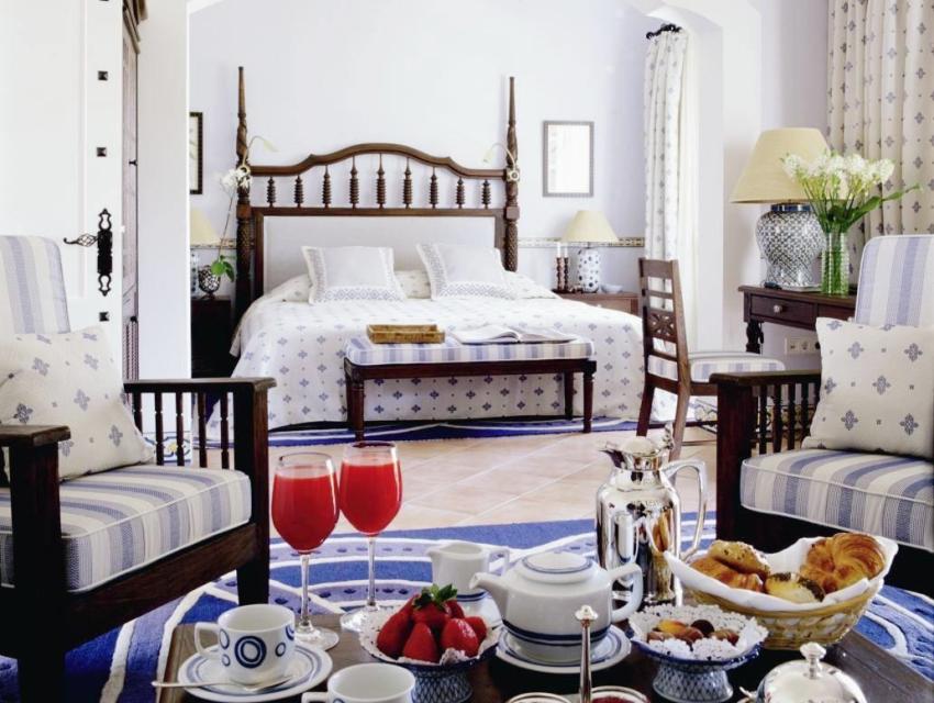 Im mediterranen Stil werden im Innenraum zarte Blau- und Weißtöne verwendet