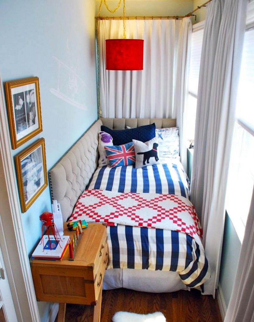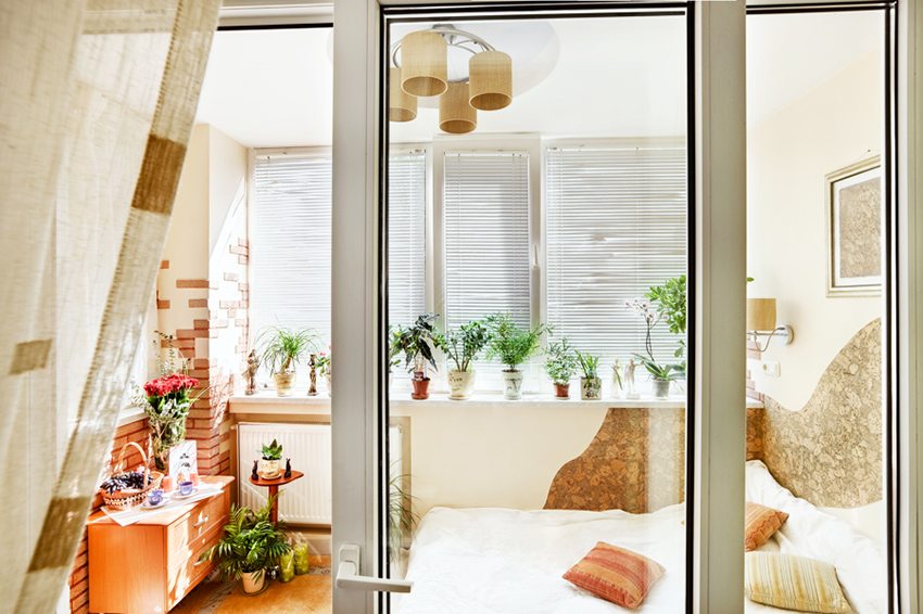 Befindet sich die Loggia auf der Südseite, sollten die Vorhänge an den Fenstern durch Jalousien oder Jalousien ersetzt werden RolllädenDadurch wird verhindert, dass helles Sonnenlicht in das Schlafzimmer gelangt. Schließlich ist Komfort während des Tagesschlafes sehr wichtig.