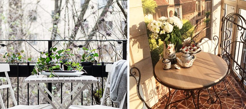 Für warme Strukturen eignen sich auch gewöhnliche Möbel, die für die Installation in Wohngebäuden konzipiert sind. Offene Balkone sind am besten mit Holz-, Schmiedeeisen- oder Korbmöbeln eingerichtet.