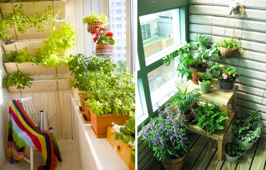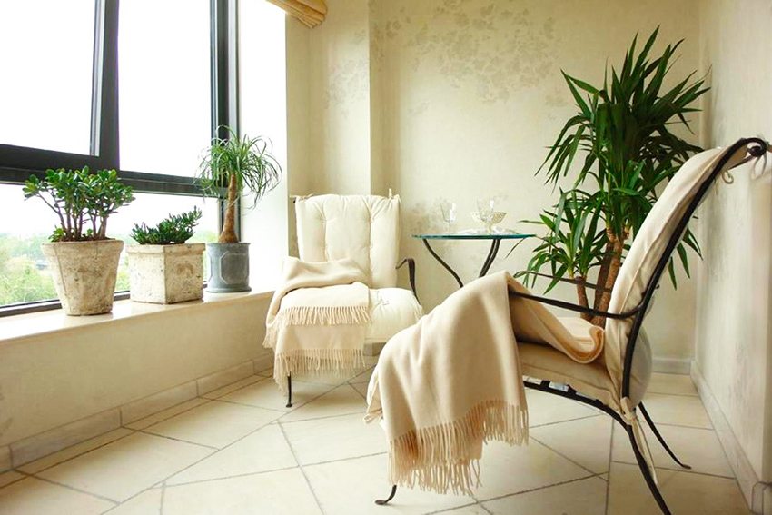 Ein warmer Balkon oder eine Loggia mit Verglasung eignet sich sowohl für Garten- als auch für Zimmerpflanzen. Die Auswahl erweitert sich erheblich. Dekorationen können durch spektakuläre Beleuchtung, passende Möbel, Figuren usw. ergänzt werden.