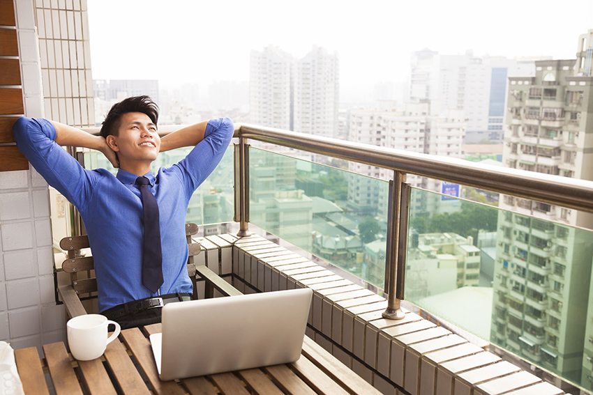 Eine provisorische Studie auf einem offenen Balkon erhöht die Produktivität bei konstantem Frischluftstrom