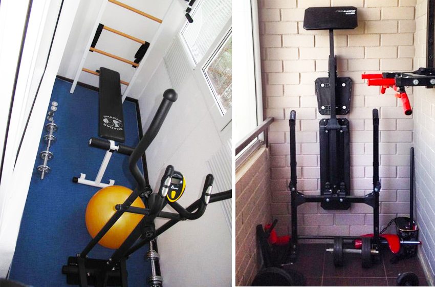 Die Loggia kann effektiv für den Sport genutzt werden. Hier können Sie Trainingsgeräte installieren, für frische Luft sorgen und alle unnötigen Dinge beseitigen, um das Training nicht zu beeinträchtigen.