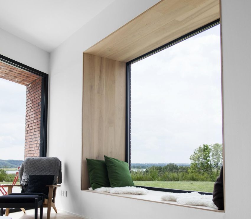 Die Hänge an den Fenstern bestehen aus Klinkerfliesen