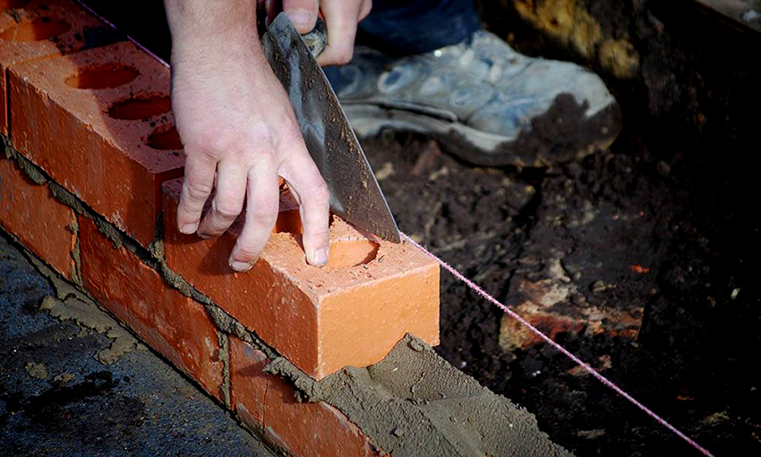 Wo fängst du an? Da der Ziegel Feuchtigkeit gut aufnimmt, sollten zwei Schichten Wasserdichtigkeit auf dem vorbereiteten und getrockneten Fundament verteilt und anschließend mit dem Mauerwerk fortgefahren werden. Hierbei ist es wichtig, das Schema strikt einzuhalten und die Breite der Verbindungsnaht zu kontrollieren.