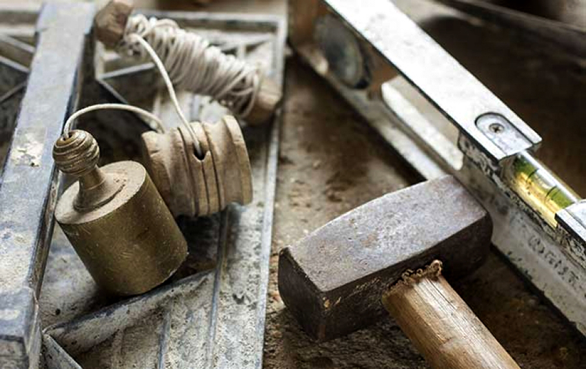 Um einen Grill zu bauen, benötigen Sie einen Hammer, eine Wasserwaage, eine Schleifmaschine und ein Lot
