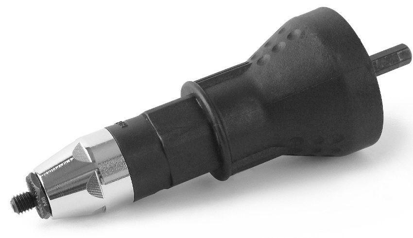 Such attachments can be used on electric and cordless tools for mounting nut rivets and other core fasteners.