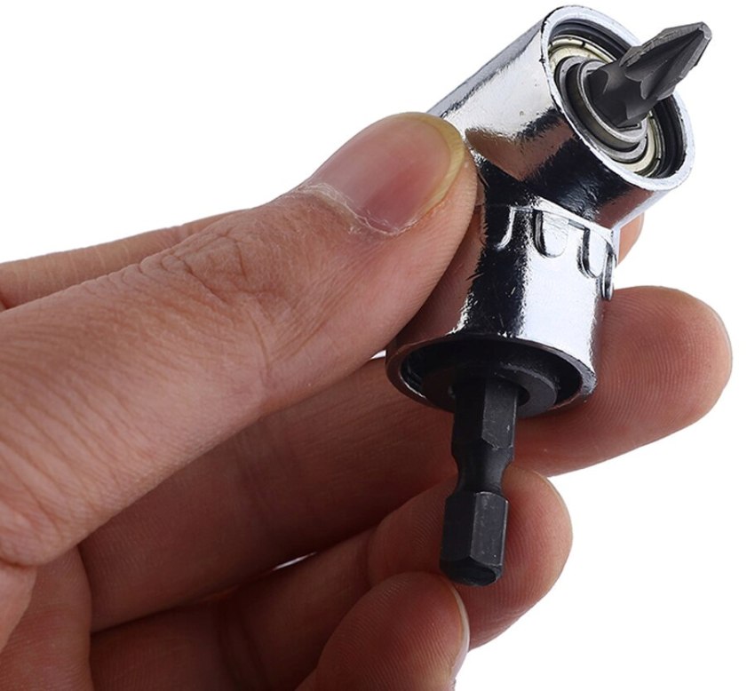 Angle adapters allow you to unscrew and tighten fasteners in hard-to-reach places. Such attachments greatly simplify the work, because the tool can be held perpendicular to the surface, and the screws can be screwed at an angle, both left and right.
