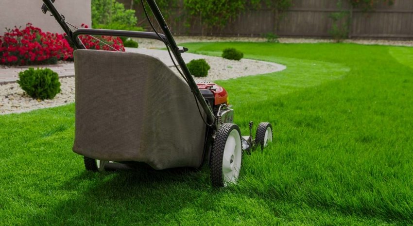 A lawnmower with a gasoline engine works in much the same way as an electric one. Cutting grass is carried out due to the rapid rotational movement of the blades of a metal knife. The cutting height is controlled by the position of the cutting element. In the process, an air stream is formed, picking up the mown vegetation from the lawn.