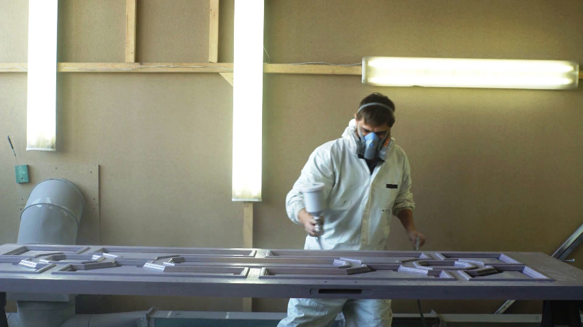 Carry out protective and decorative coatings in the horizontal position of the door. This will prevent drips. If a spray can is used, the intensity of the spray must be monitored and kept at the same distance throughout the application.