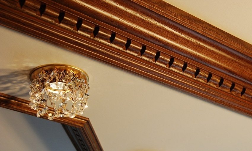 Wooden ceiling plinth is rarely used due to the high cost of the material and the complexity of installation. In addition, it will not be possible to mask errors in the joints on a wooden plinth. A plastic skirting board for a stretch ceiling is also not very suitable, because having a small width and a rigid structure, it will not be able to mask the flaws of the walls.