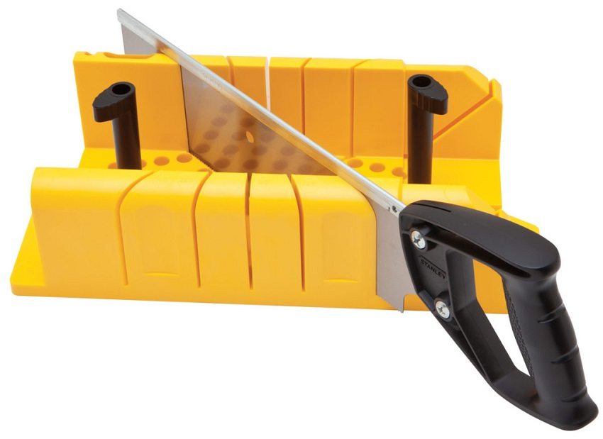 - miter box. This is a special tool, as in the photo, which allows you to easily and neatly file corners. It is important to check the direction of the cut;