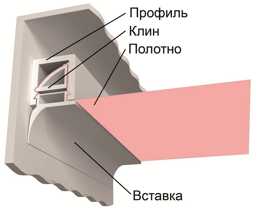 A masking tape, or a plug for stretch ceilings, is often supplied by the manufacturer as a set, like other accessories for stretch ceilings. You need to fix it directly into the groove of the profile. It prevents the formation of dust and dirt that would inevitably accumulate in an open gap.