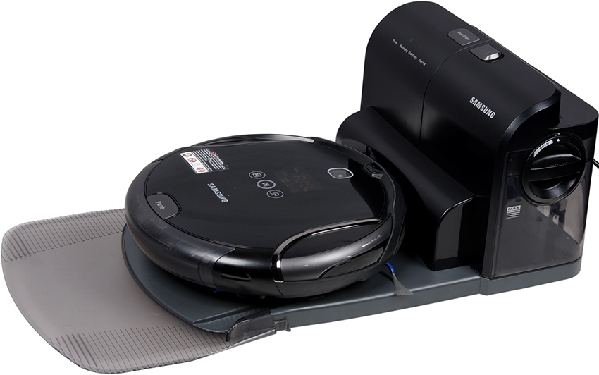 Según las revisiones, la calificación de los robots aspiradores de la serie NoviB® está encabezada por el modelo Samsung SR8980, en el que la estación base está diseñada no solo para cargar la batería, sino también para vaciar el colector de polvo del dispositivo con una capacidad de 0,3 litros. El recipiente de la base tiene un volumen de 2 litros. Los residuos se eliminan con un cepillo y dos pequeñas piezas laterales para limpiar las esquinas. El modelo está equipado con 12 sensores y una cámara que captura el espacio circundante para seguir construyendo un mapa de movimiento.