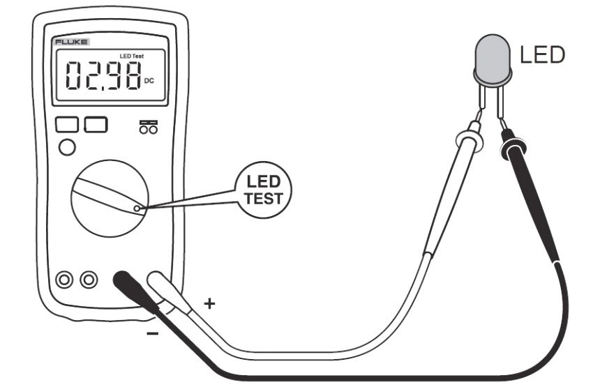 Una forma de verificar el estado de funcionamiento de los LED es probar con un multímetro. Tal dispositivo puede diagnosticar LED de cualquier diseño. Antes de verificar el LED con un probador, el interruptor del dispositivo se establece en el modo de "marcación" y las sondas se aplican a los terminales. Cuando la sonda roja está cerrada al ánodo y la negra al cátodo, el cristal debe emitir luz. Si se invierte la polaridad, la pantalla debe mostrar la lectura "1".
