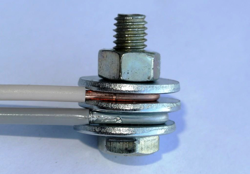 Para conductores en los que el diámetro del núcleo no supere los 2 mm, será suficiente un tornillo M4. Si el cable de cobre está trenzado, en primer lugar, es necesario atravesarlo mediante soldadura.