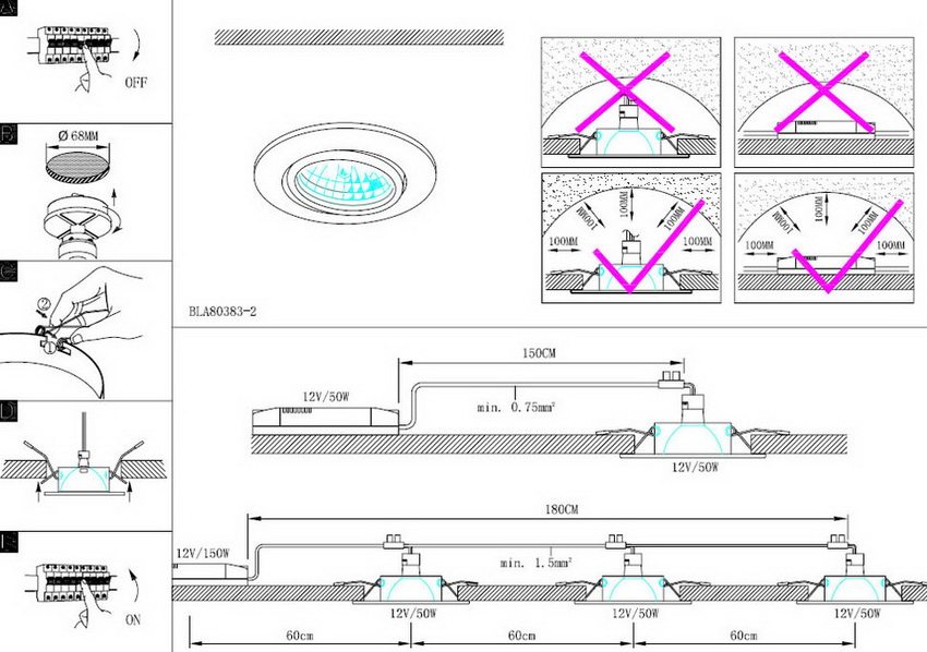 Diagrama de instalación del punto incorporado. Lámparas LED