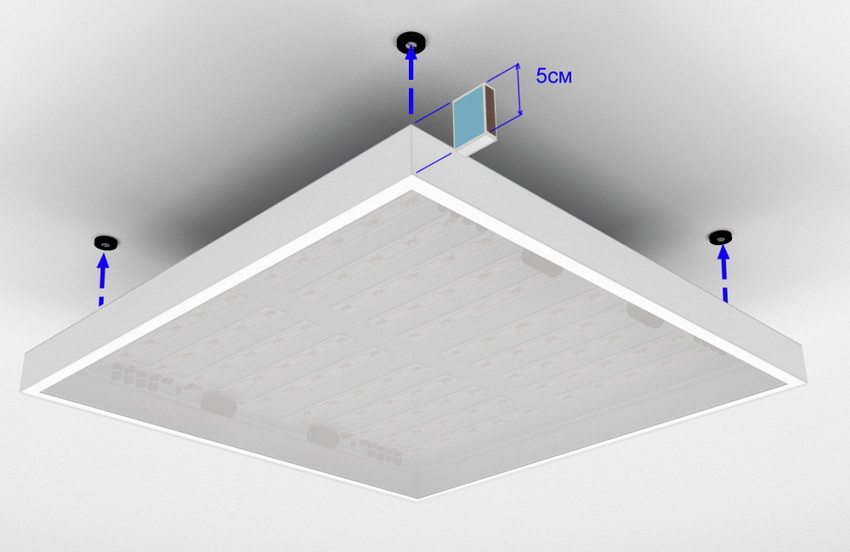 ¡Aviso util! El uso de paneles empotrables LED ultradelgados de aproximadamente 1 cm de espesor permite formar sistemas de iluminación bastante compactos.