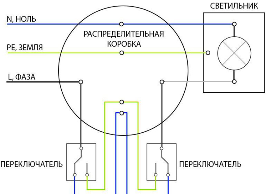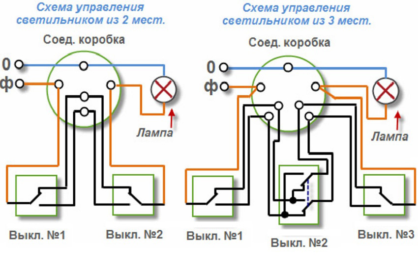 Interruptor de paso: diagrama de conexión del dispositivo desde diferentes lugares