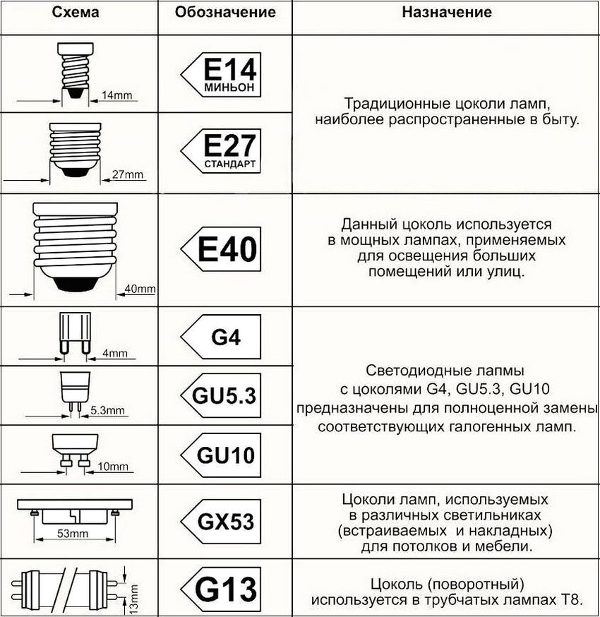 Las más populares son las bases de lámpara LED regulables e27 y e14. La letra "e" en el título indica que el diseño de la pieza está representado por una conexión roscada estándar. Los valores numéricos corresponden al diámetro de la base en milímetros.