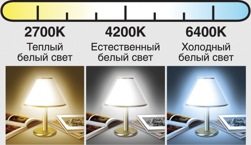 Al elegir una lámpara, debe prestar atención a la temperatura de color, que determina la composición espectral de la fuente de luz. Los elementos con valores de 4000-4500 K son populares para la mayoría de las habitaciones. Para un apartamento, debe elegir lámparas que creen una luz cálida con un valor de 2700-3500 K; los tonos fríos con una temperatura de 4000-4500K serán convenientes para la lectura.