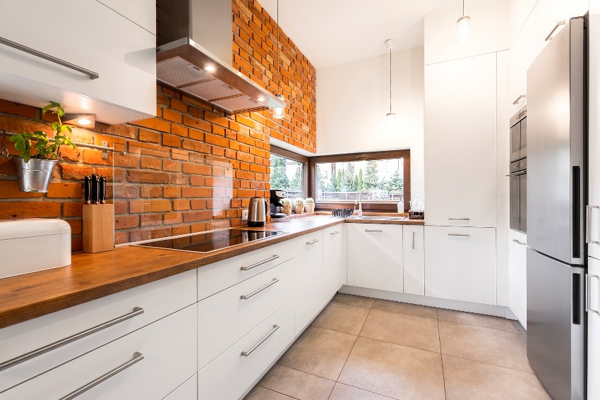 - La iluminación LED para el área de trabajo de la cocina es solo el caso cuando las fuentes de luz se montan debajo de los gabinetes de pared;