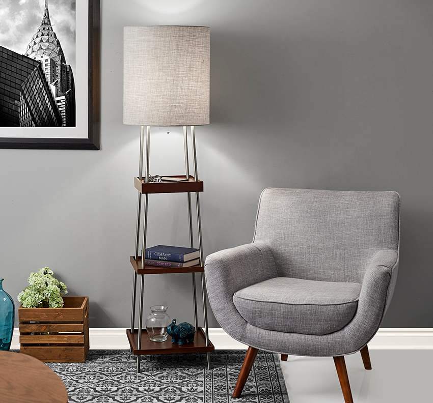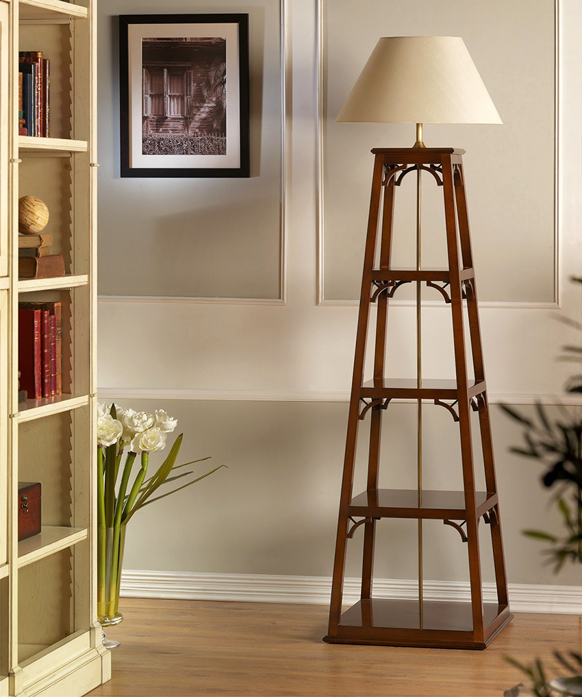 Los fabricantes han desarrollado una gran cantidad de modelos de luminarias, en cuya fabricación se utilizan una variedad de materiales, y los dispositivos en sí difieren no solo en apariencia, sino también en funcionalidad. Las lámparas de pie con estante se han vuelto cada vez más populares, lo que le permite usar la lámpara no solo como fuente de luz, sino también como un lugar para almacenar elementos necesarios: periódicos, revistas, artesanías y mucho más.