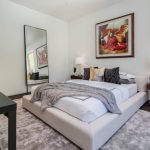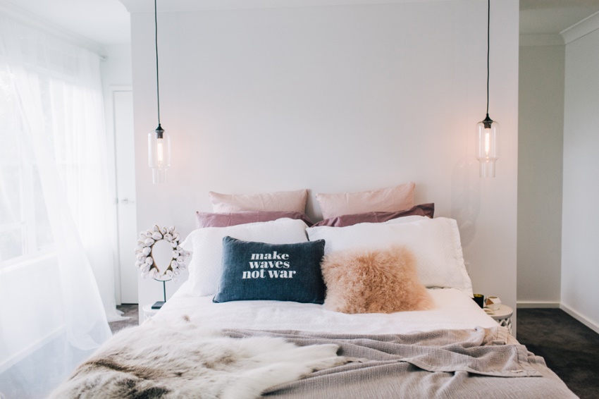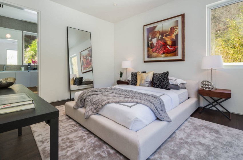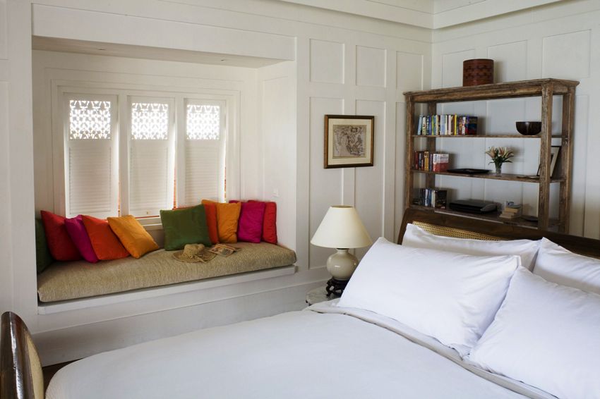 La ausencia de una mesita de noche en la habitación liberará espacio para instalar un sistema de almacenamiento, un tocador o una silla de lectura.