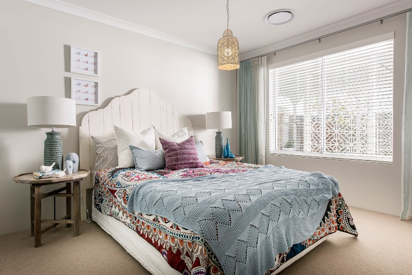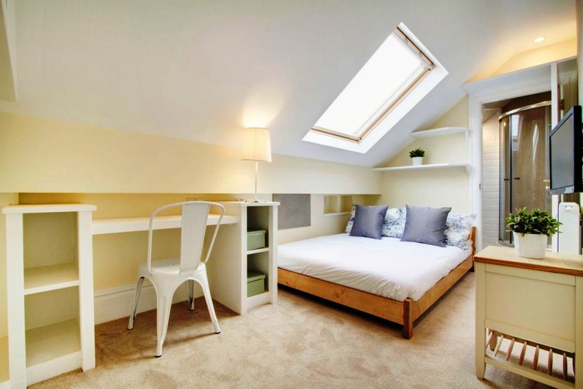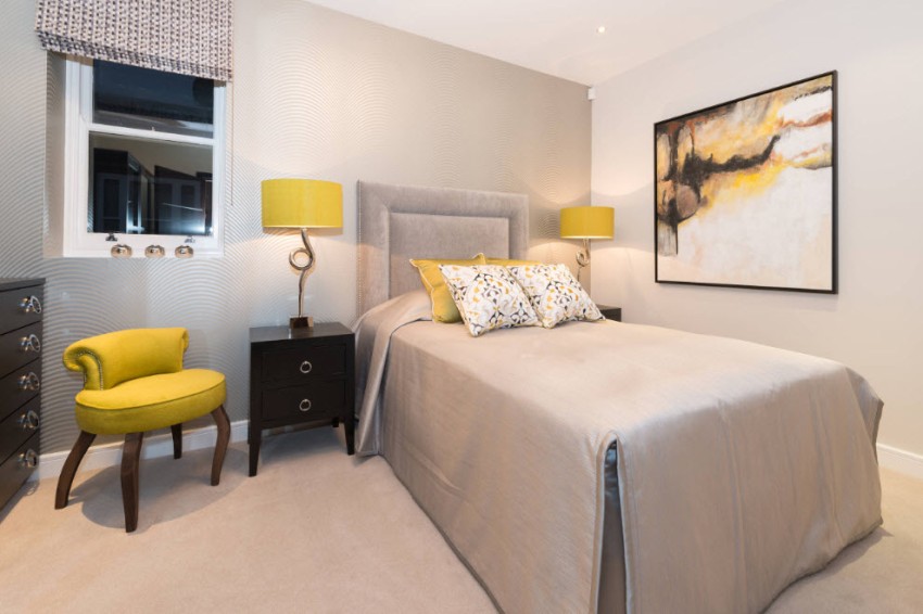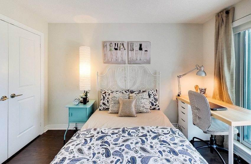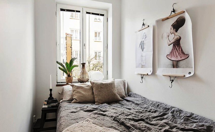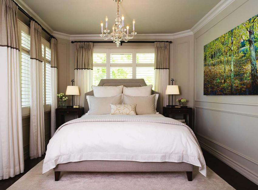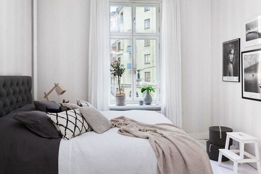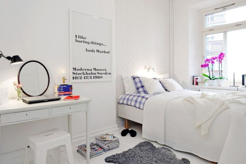 Paredes del dormitorio 12 ft2 m es mejor decorar en colores neutros claros, esta técnica aumentará visualmente el área